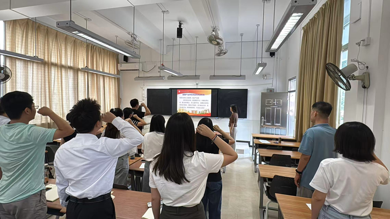 学校2025年“优秀教师”杨华杰副教授结合自身的教学经历和育人实践,分享了工作感悟和师德体验。在学院党总支纪检委员严玮副教授的带领下,全院教职工进行师德师风宣誓,表示将严格遵守教师行为准则,牢记立德树人的初心使命。